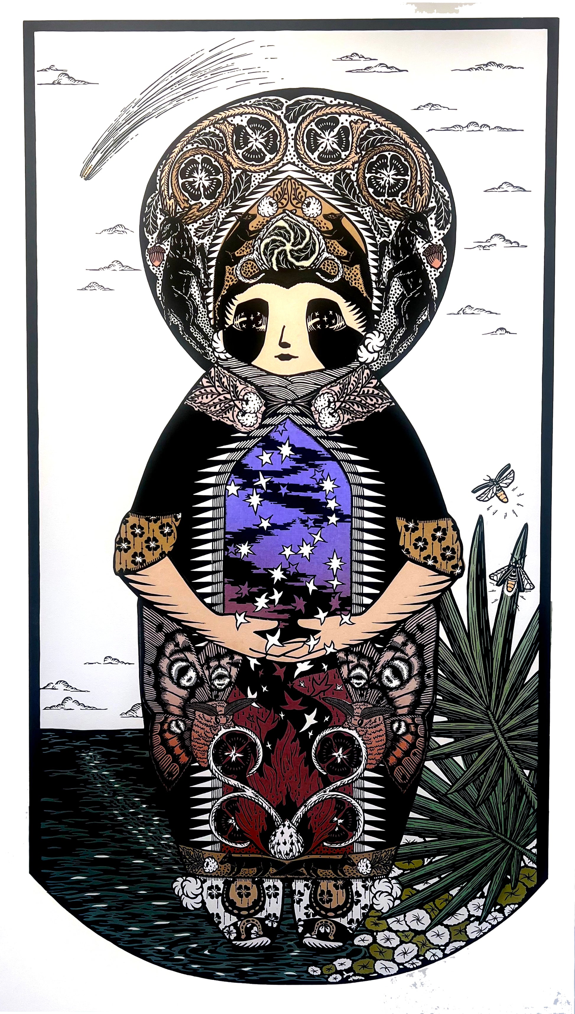 Woodcut with chine collé, 2025
